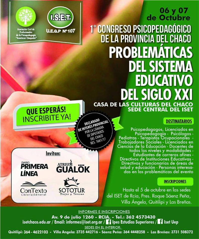 Sígamos en las redes Comparta este artículo. Comentarios comments Navegación de entradas CURSO PROFUNDIZACIÓN EN MEDIACIÓN PENAL-ABIERTA LA INSCRIPCIÓN Participación del equipo en I Congreso Psicopedagógico del Chaco.