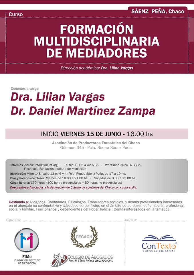 Sígamos en las redes Comparta este artículo. Comentarios comments Navegación de entradas JORNADA: LA MEDIACIÓN COMO HERRAMIENTA DE CAMBIO SOCIAL. INSCRIPCIONES ABIERTAS. FORMACIÓN EN MEDIACIÓN EN FORMOSA.
