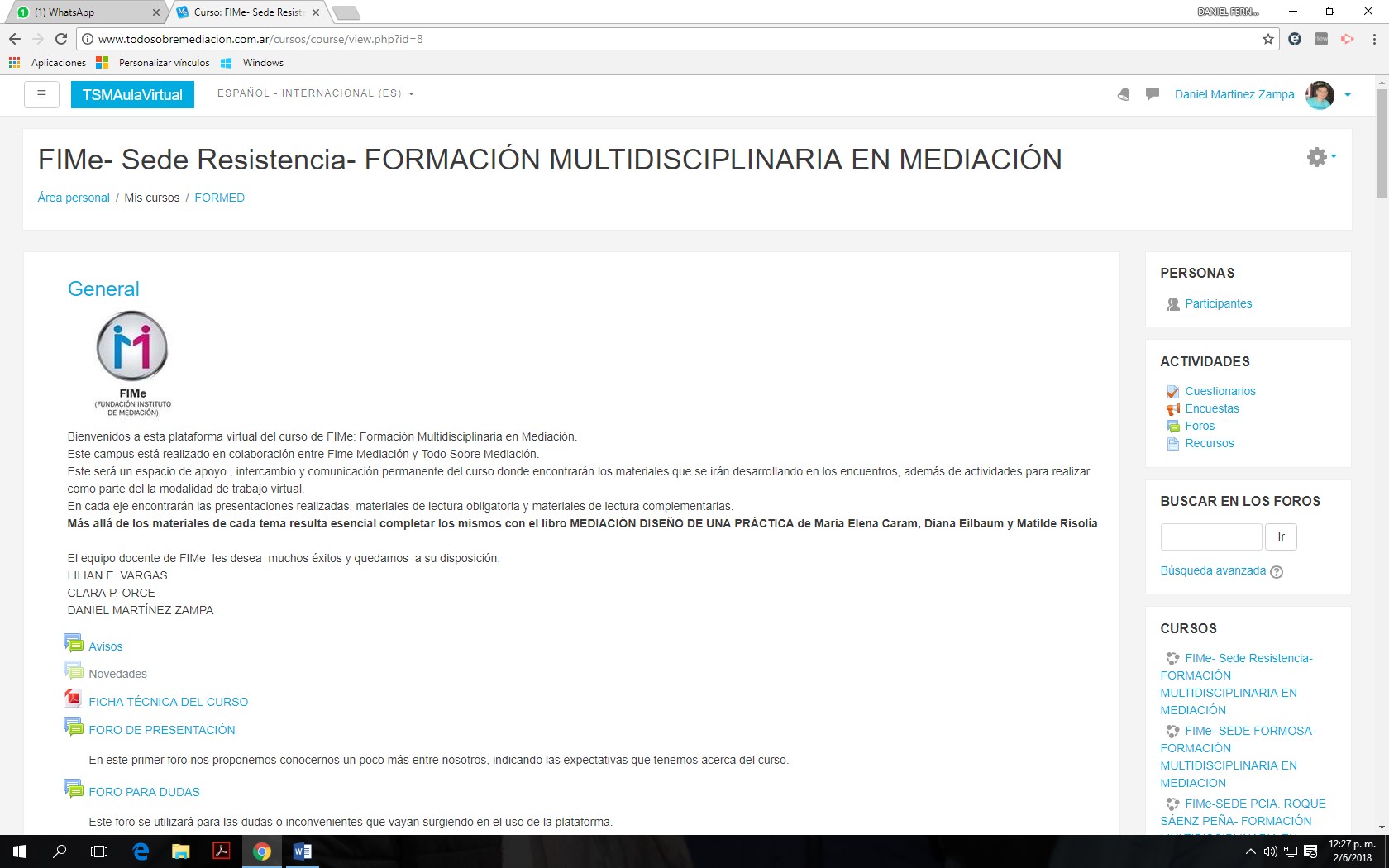 FIMe MEDIACIÓN, a través de su Directora Académica Dra. Lilian Vargas Y EL PORTAL TODO SOBRE MEDIACION a través de su responsable Dr. Daniel Martínez Zampa hemos realizado una alianza estratégica a fin de implementar mejoras en las actividades on line y a distancia en la formación y capacitación continua de mediadores.